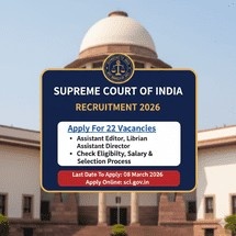 The Registry of the Supreme Court of India has released an official recruitment notification (Advt. No. 6/RC-2025) for 22 vacancies in various specialized departments. The online application process starts on February 23, 2026. This is a prestigious opportunity for Law and Library Science professionals to work at the apex court of the country.